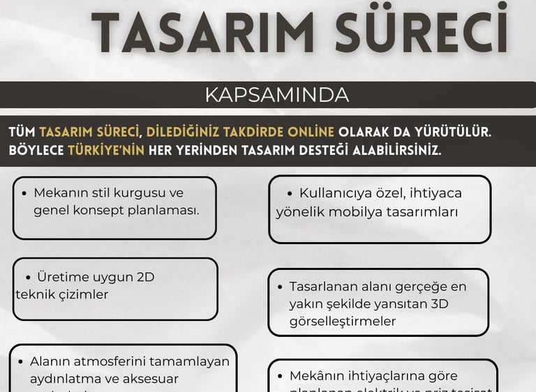 Mekânınız için detaylı, işlevsel ve estetik çözümler sunuyoruz.