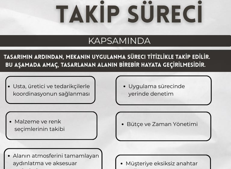 Tasarımın tüm uygulama aşamalarını titizlikle takip ediyor, süreci kontrol altında tutuyoruz.