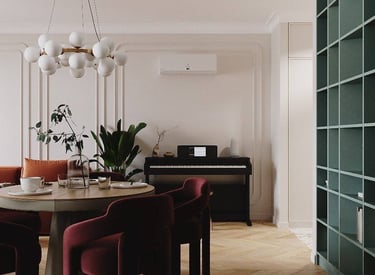 Sıcak dokular ve karakterli doğal malzemelerle atmosferi güçlü, konforlu bir salon tasarlıyoruz.